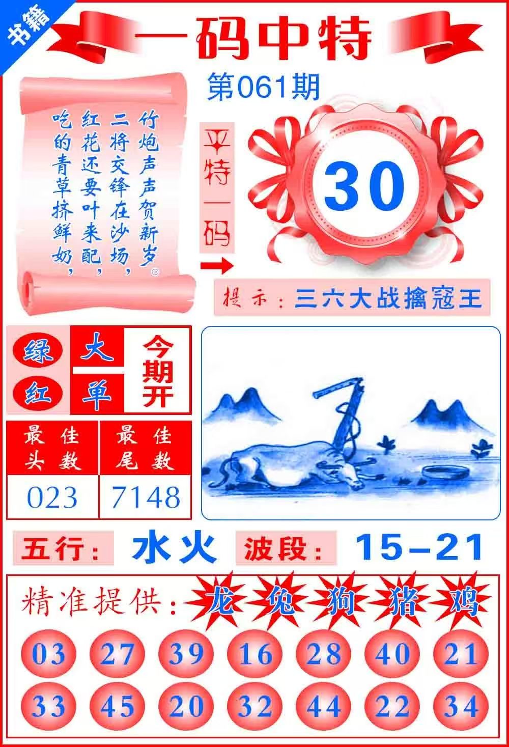 第061期【猪20 牛18 马37 虎17】 |